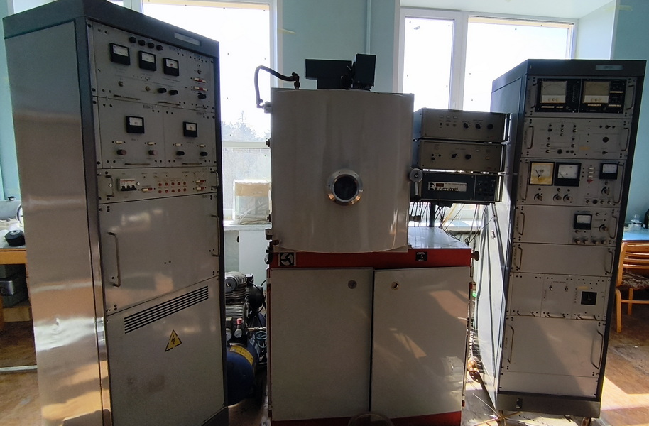 Установка ионно-лучевого напыления тонкопленочных покрытий с широкоапертурным газоразрядным источником ионов с полым холодным катодом.